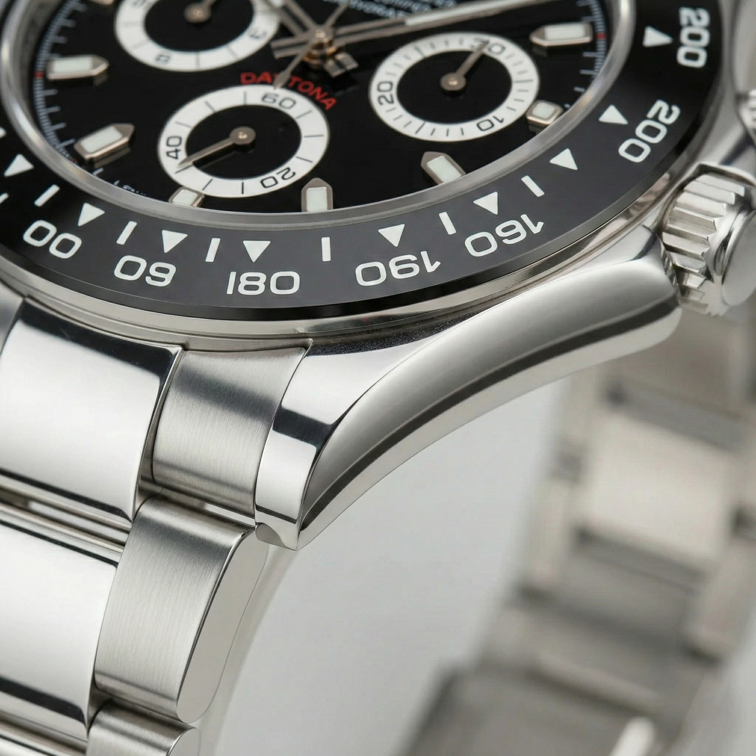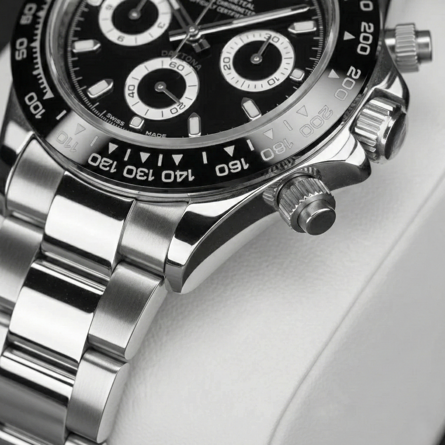 A Daytona Panda egy merész, egyedi darab, amelyet a klasszikus verseny kronográfok ihlettek. Fehér és fekete számlapjával a sportosságot a mindennapi viselettel ötvözi.