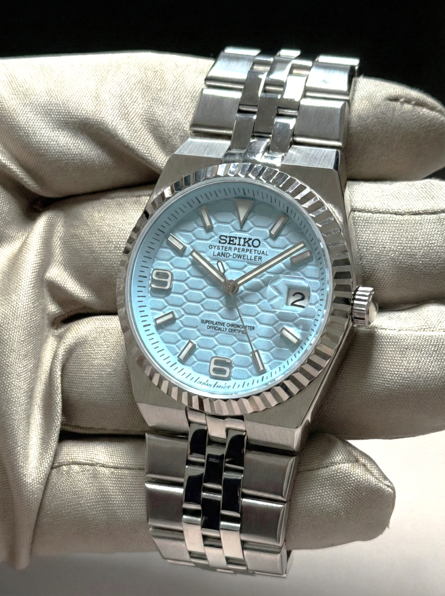 Játékos kifinomultság Lenyűgöző színfolt az acélon. Ez a világoskék változat a vidám, nyári esztétikát a rovátkolt lünetta klasszikus eleganciájával ötvözi.